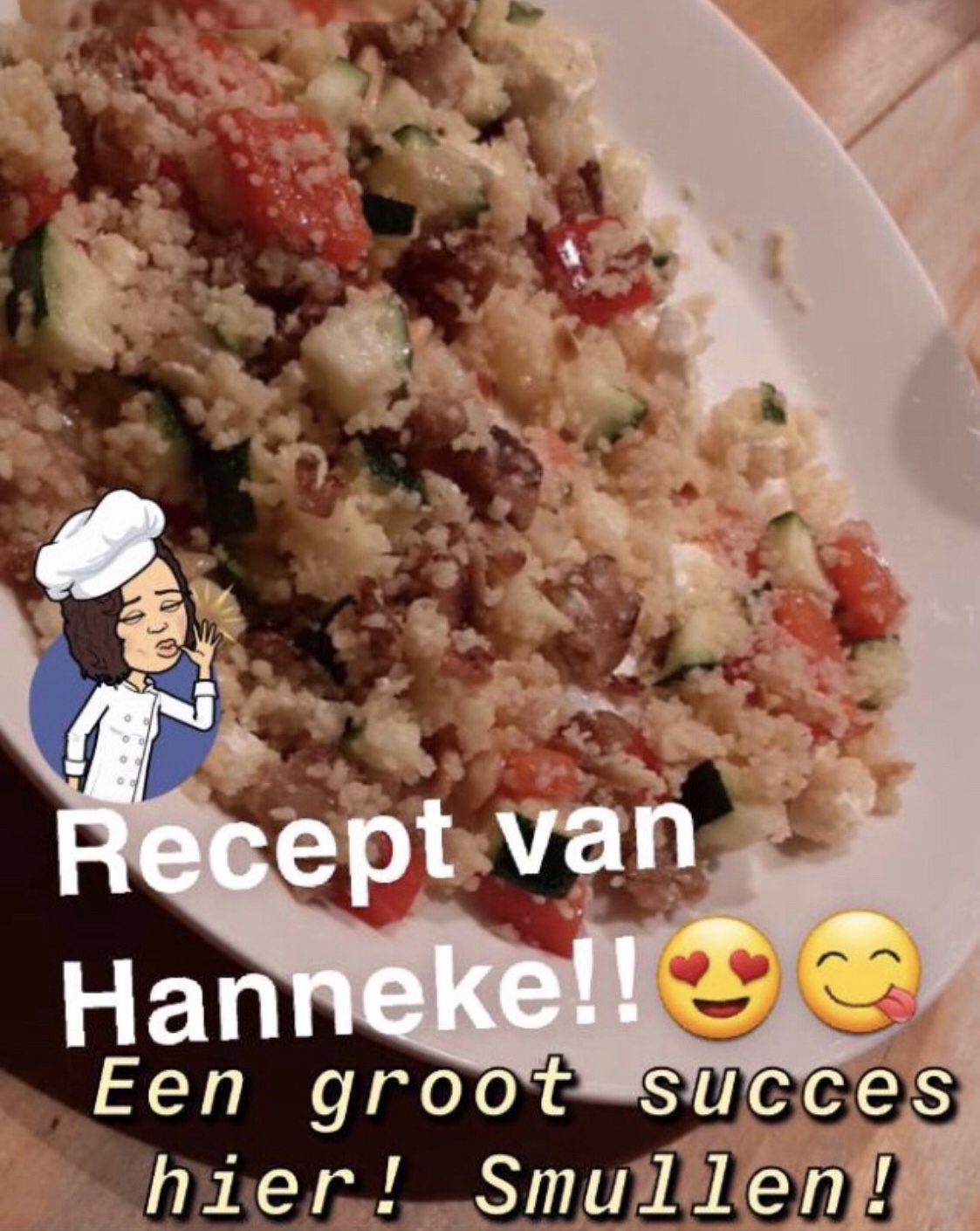 - Dit groentemengsel laten afkoelen en alvast op de couscous leggen.