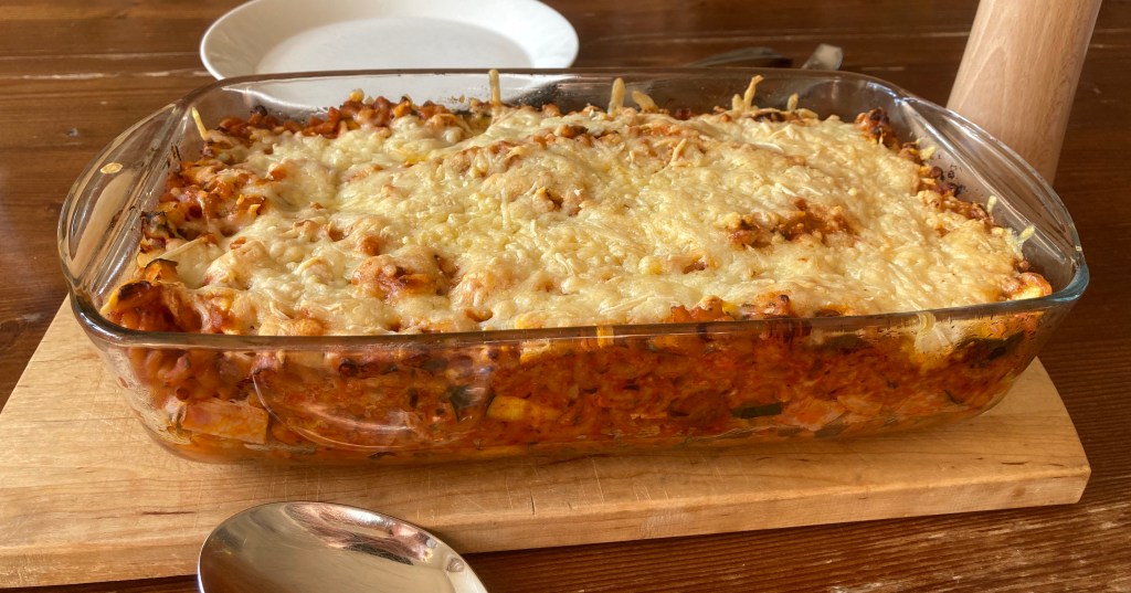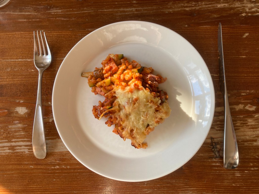 Het is wel grappig: we noemen dit recept ‘makkelijke macaroni’, maar het is in de loop van de tijd steeds minder makkelijk geworden. Mijn moeder maakte dit vroeger, ik weet niet meer hoe oud ik toen was. Ik weet ook niet waar zij het recept vandaan had of dat ze het zelf had bedacht. Maar toen was het dus simpeler: macaroni koken, daar tomatenpuree, blokjes ham, geraspte kaas en wat maggi door. In een ovenschaal, geraspte kaas er op, in de oven zodat er een lekker korstje op zit.